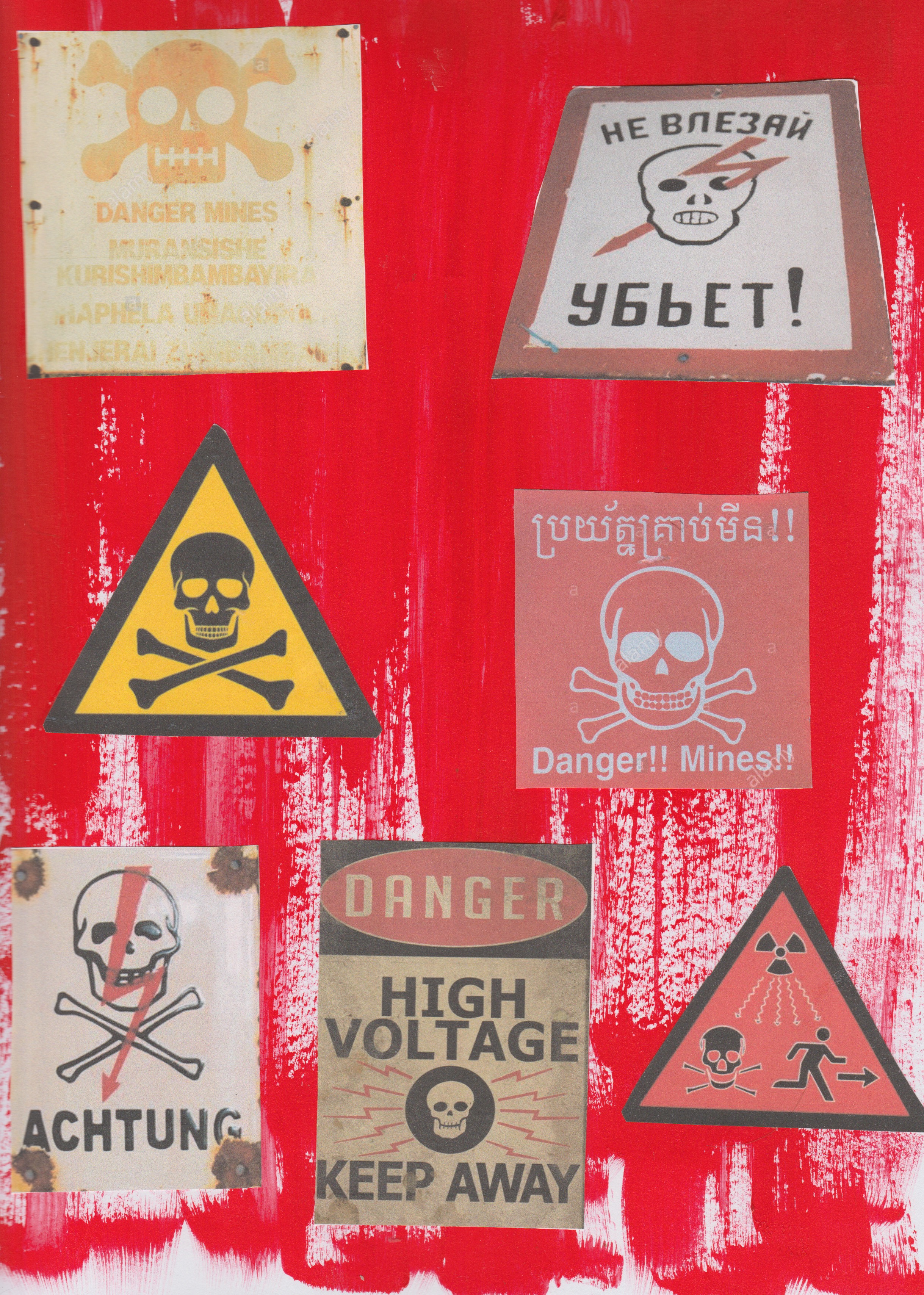 I didn’t want my symbol to represent a specific danger – such as the biohazard symbol which represents hazardous biological substances, or the international radiation symbol, for example. I wanted something like a skull, or skull and crossbones, which is used to represent danger, or risk of death more generally – from mines, high voltage, radiation, etcetera.